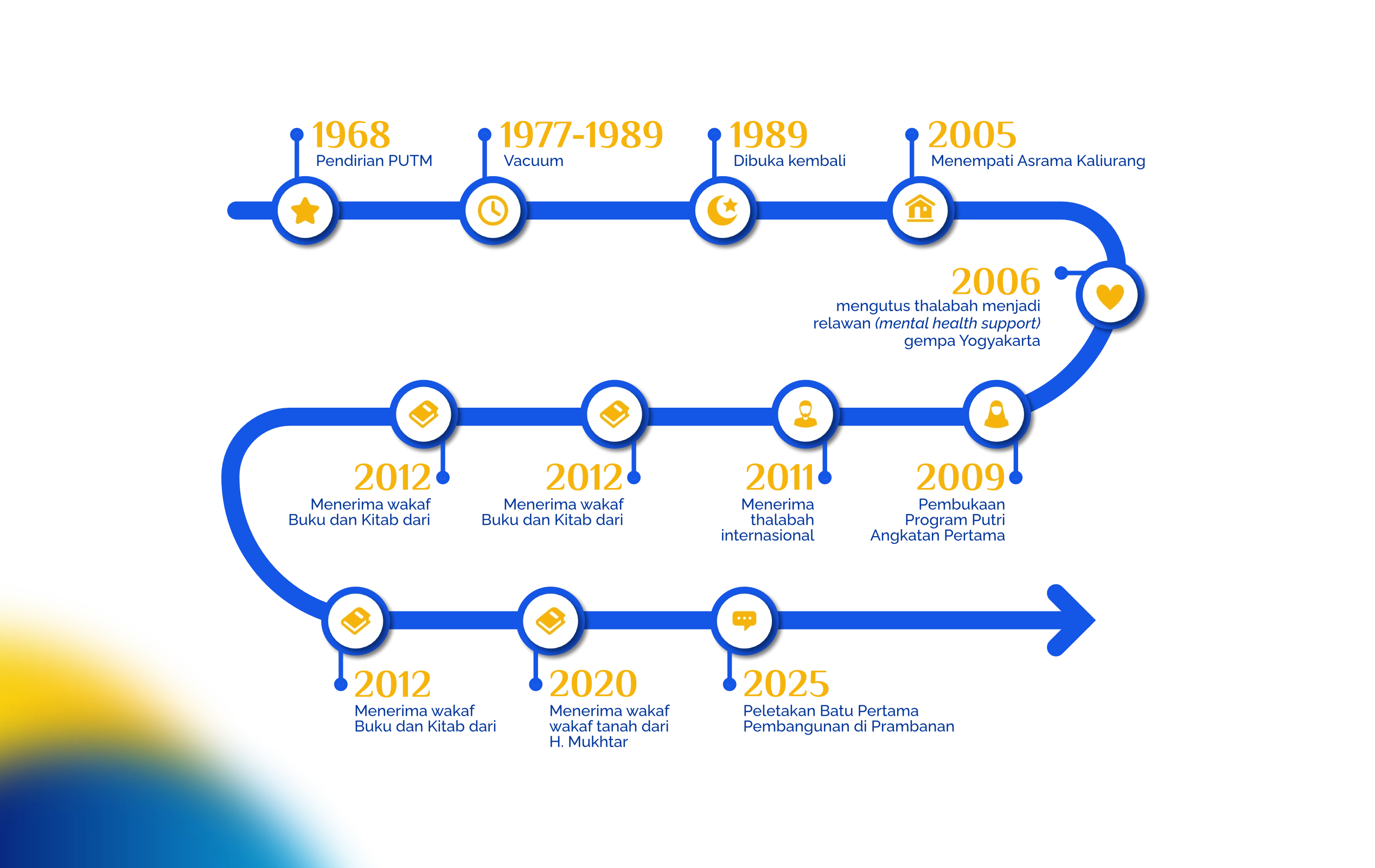 Di samping itu mulai tahun 2009 sebagian thalabah baru PUTM yang telah memenuhi persyaratan terdaftar sebagai mahasiswa Program Studi Pendidikan Agama Islam Universitas Muhammadiyah Yogyakarta (UMY) dan sebagian lagi terdaftar sebagai mahasiswa Program Studi Tafsir Hadis (sekarang Program Ilmu Hadis) Universitas Ahmad Dahlan (UAD) Yogyakarta dengan bebas biaya perkuliahan dan subsidi biaya konsumsi dan akomodasi